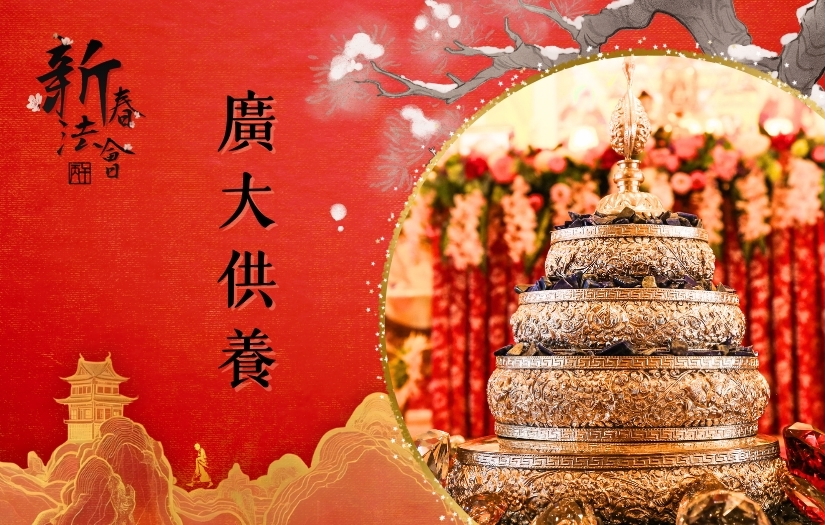 丙午新春期間,妙音僧眾禮拜過去莊嚴劫、現在賢劫及未來星宿劫千尊佛;唸誦《金光明經》、《大白傘蓋佛母經》,誦修《上師薈供》及祈願法會等諸多經典及課誦儀軌,除滅過去積累罪障,累積無邊福德,以此功德為供養者虔誠祝福、迴向。邀請您一起參與供養這殊勝法會! 禮佛一拜能罪滅河沙,法會期間累計超過百萬禮拜,所生福德資糧亦不可思議! 邀請您一同於新春法會中廣大供養,盛滿眾色妙味,廣宴一切有情!供養項目的餘款將轉入妙音整體運作基金。